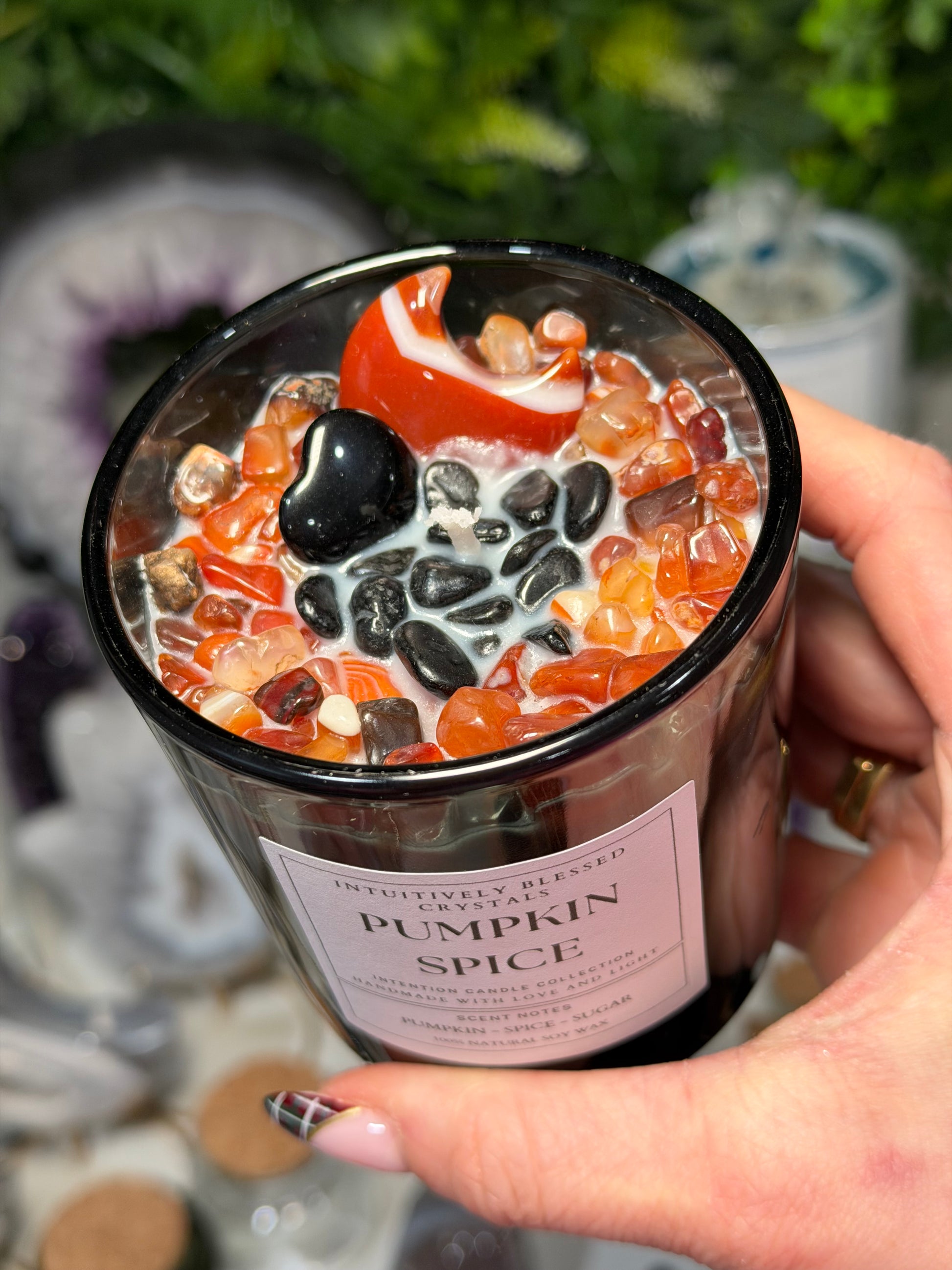 please see photos for some examples of the crystal intention candles!